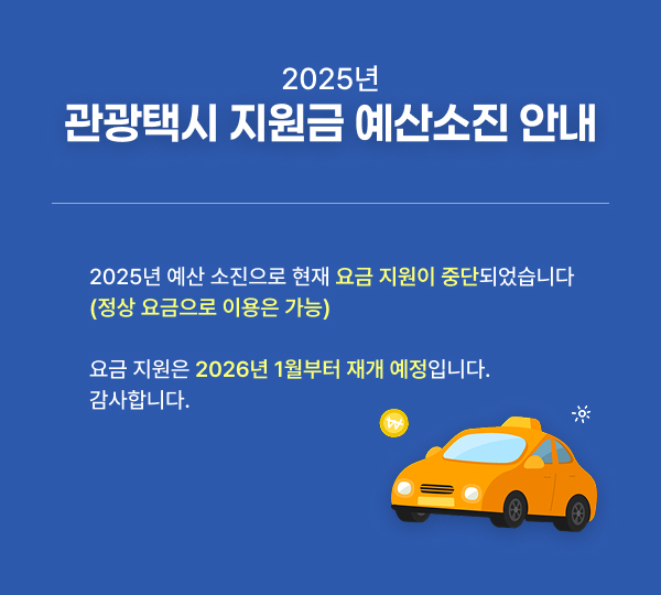 [공지] 2025년 관광택시 지원금 예산소진 안내